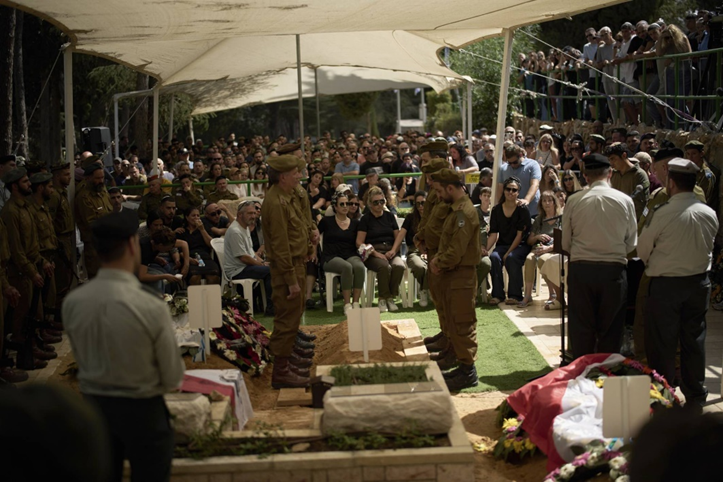 أقارب وأصدقاء خلال تشييع أحد القتيلين الإسرائيليين في مقبرة عسكرية بالقدس الجمعة (أ.ب)