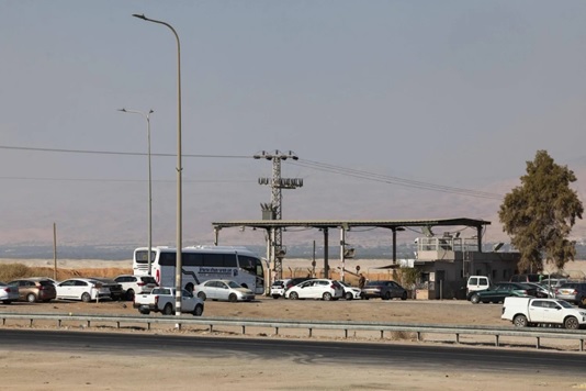 قوة أمنية إسرائيلية تغلق طريقاً يؤدي إلى جسر الملك حسين (اللنبي) الخميس (أ.ف.ب)
