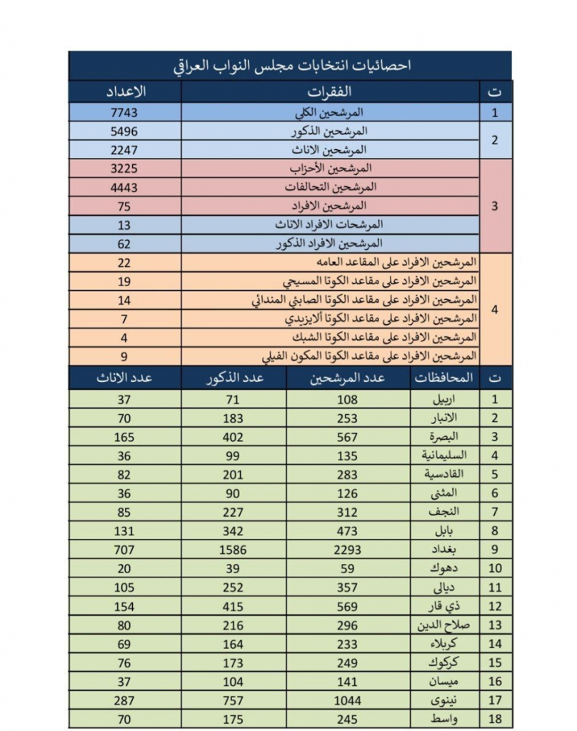 نشرت المفوضية العليا المستقلة للانتخابات، اليوم السبت، إحصائيات انتخابات مجلس النواب 2025.