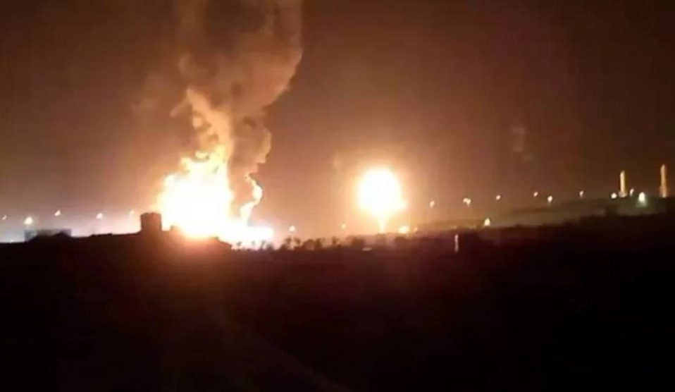 لقطة مأخوذة من فيديو متداول للحظة استهداف حقل «كورمور» في السليمانية (تواصل اجتماعي)