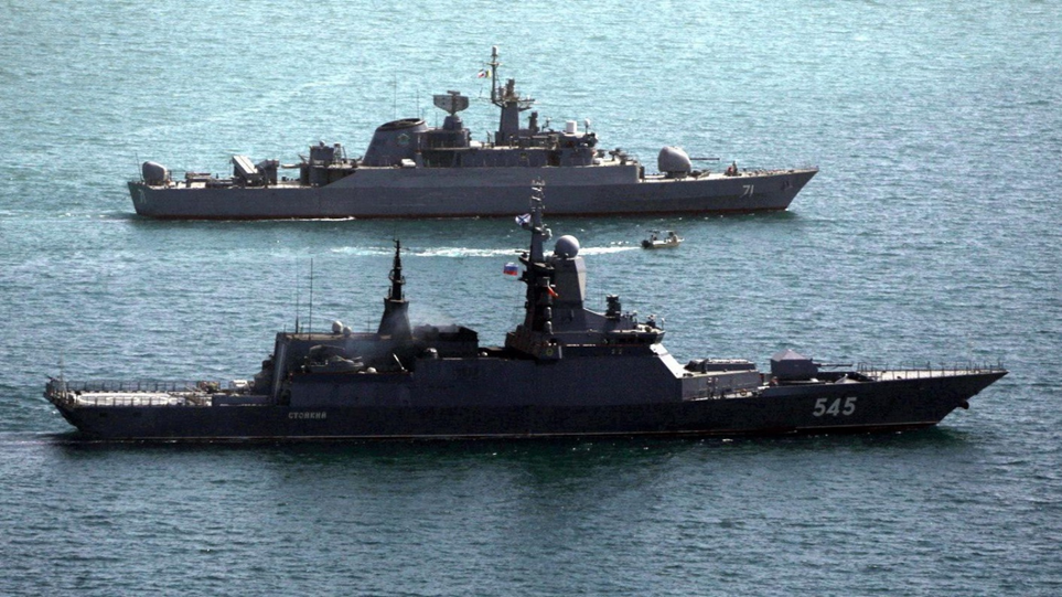 الفرقاطة الروسية ستويكي (أسفل) خلال مناورة بحرية مشتركة مع إيران في بحر عُمان في 19 فبراير/شباط