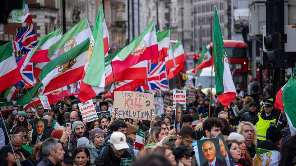 لوّح متظاهرون بالأعلام ورفعوا صور ولي العهد الإيراني، رضا بهلوي، خلال مسيرة احتجاجية في لندن. سار مئات من أنصار النظام الملكي الإيراني في شوارع وسط لندن، المملكة المتحدة. أراد المتظاهرون إظهار دعمهم للمتظاهرين المناهضين للحكومة في إيران. ويطالب المتظاهرون باستبدال المرشد الأعلى الإيراني، آية الله علي خامنئي، ونظامه بولي العهد الإيراني، رضا بهلوي، المقيم في المنفى بالولايات المتحدة.