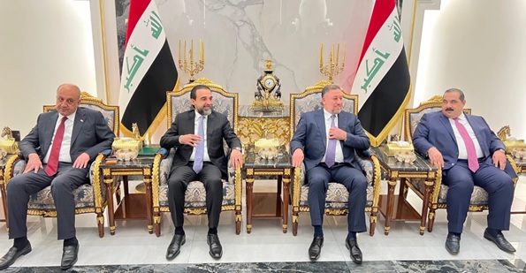 جاء ذلك خلال اجتماع موسع عقد بمبادرة ودعوة من رئيس تحالف السيادة خميس الخنجر في بغداد، بهدف توحيد الرؤى والمواقف إزاء الملفات الوطنية الكبرى وتعزيز العمل المشترك بين القيادات والكتل السياسية، وفق بيان صدر في وقتها.