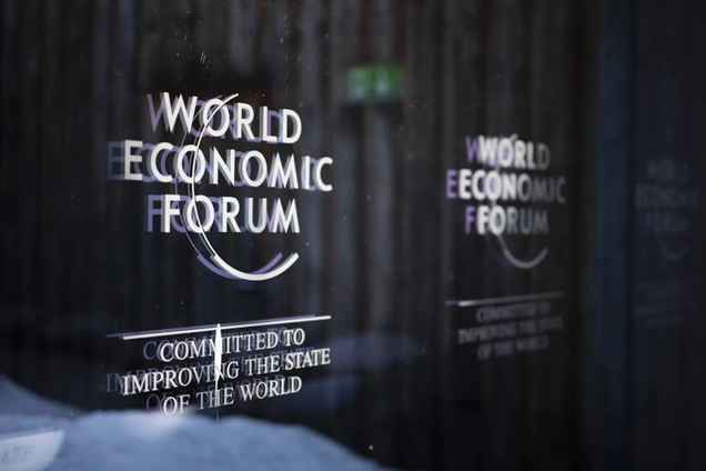 شعار المنتدى الاقتصادي العالمي قبل انعقاد الاجتماع السنوي للمنتدى في دافوس (إ.ب.أ)