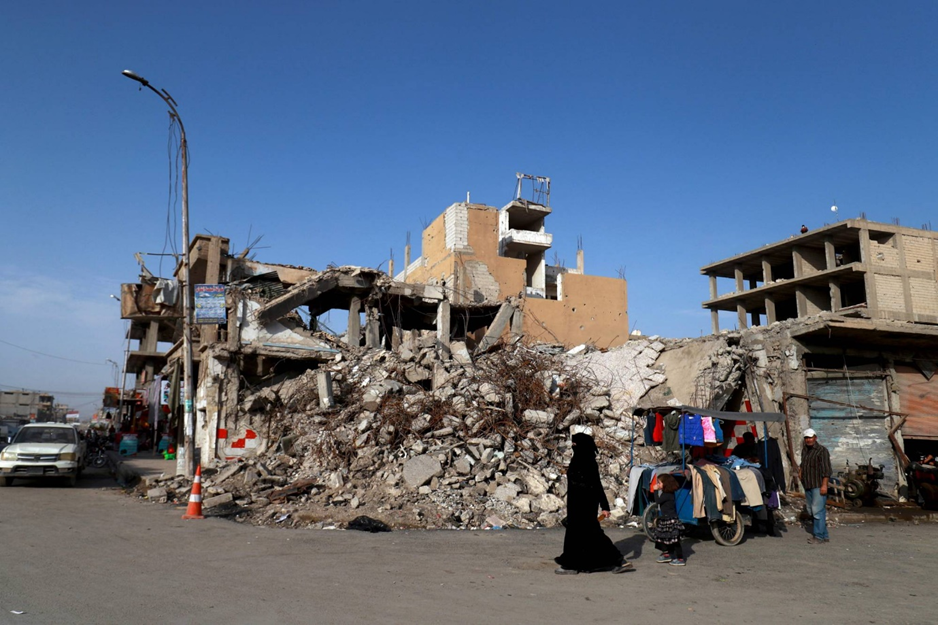 سيدة تعبر بمنطقة مدمرة وسط مدينة الرقة التي كانت تحت سلطة تنظيم «داعش» (أرشيفية- أ.ف.ب)