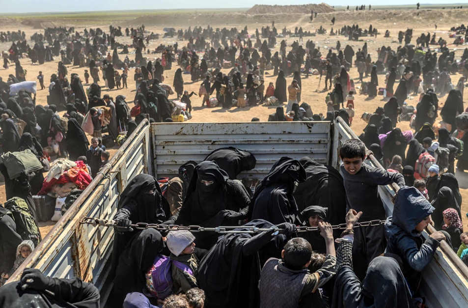 نقل عائلات تنظيم «داعش» من الباغوز إلى مراكز احتجاز بإدارة «قسد» في 2019 (أ.ف.ب)
