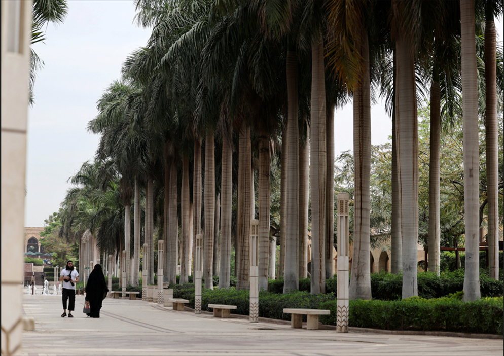 مصريون يزورون حديقة الأزهر في القاهرة (رويترز)