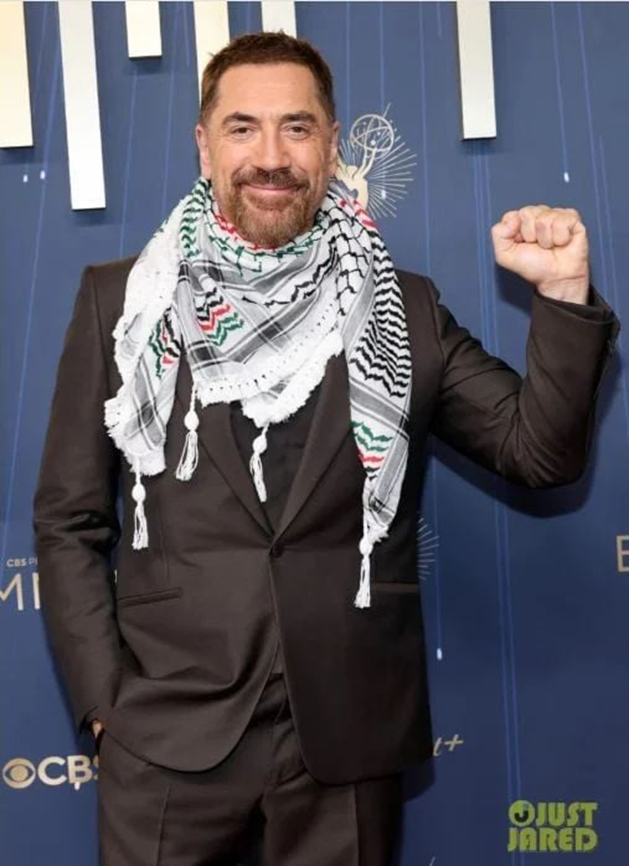 سجل النجم الإسباني خافيير بارديم حضوره على السجادة الحمراء في حفل جوائز إيمي 2025 وهو يرتدي كوفية فلسطينية، معلنًا دعمَه لحملة “عمّال السينما من أجل فلسطين” ومدينًا الابادة الجماعية الّتي تحصل في غزّة.