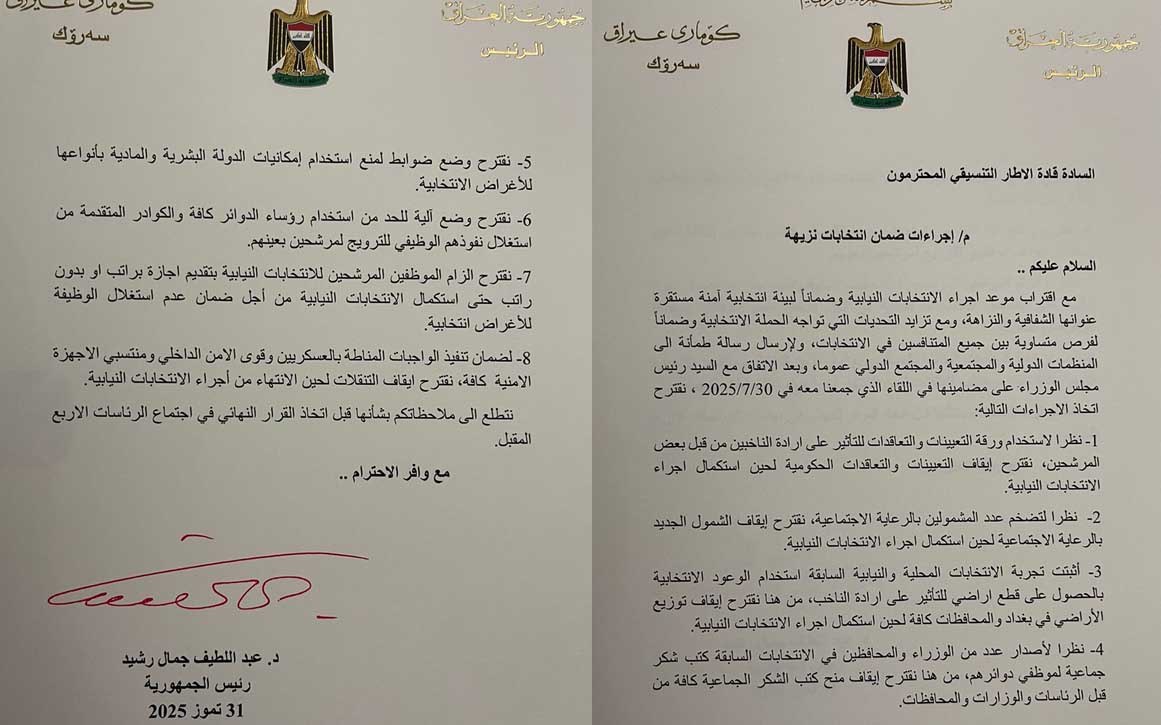 رئيس الجمهورية يوجه رسالة مهمة إلى قادة الإطار التنسيقي