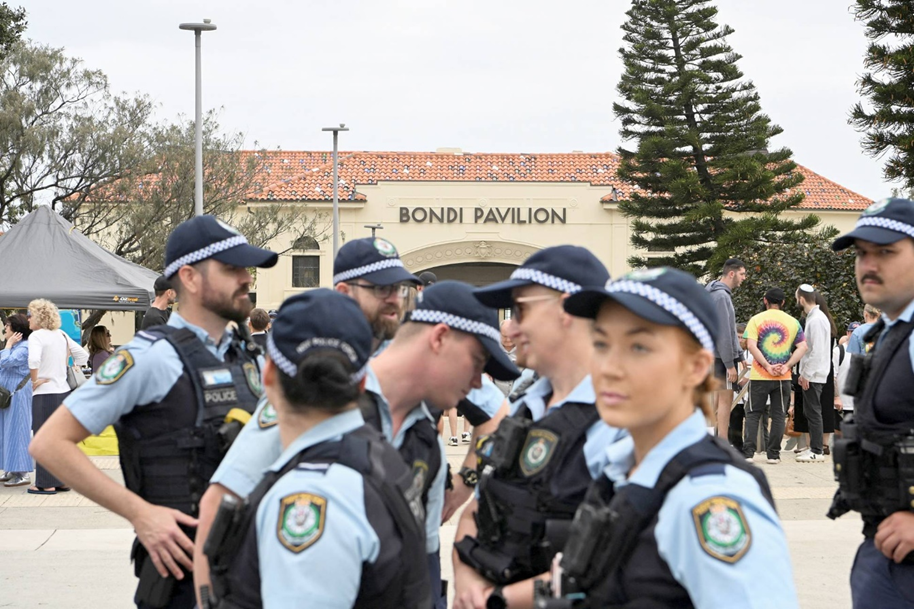 عناصر من الشرطة متجمعون الثلاثاء قرب شاطئ بونداي في سيدني الذي شهد واقعة إطلاق نار خلال احتفال اليهود بعيد حانوكا (رويترز)
