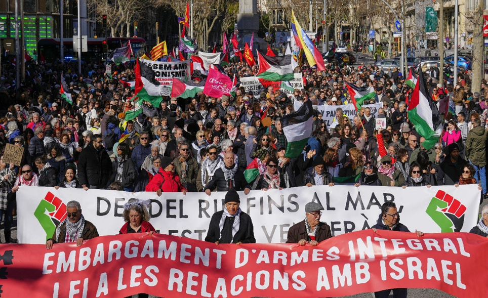 مسيرة مؤيدة للفلسطينيين في برشلونة، إسبانيا.