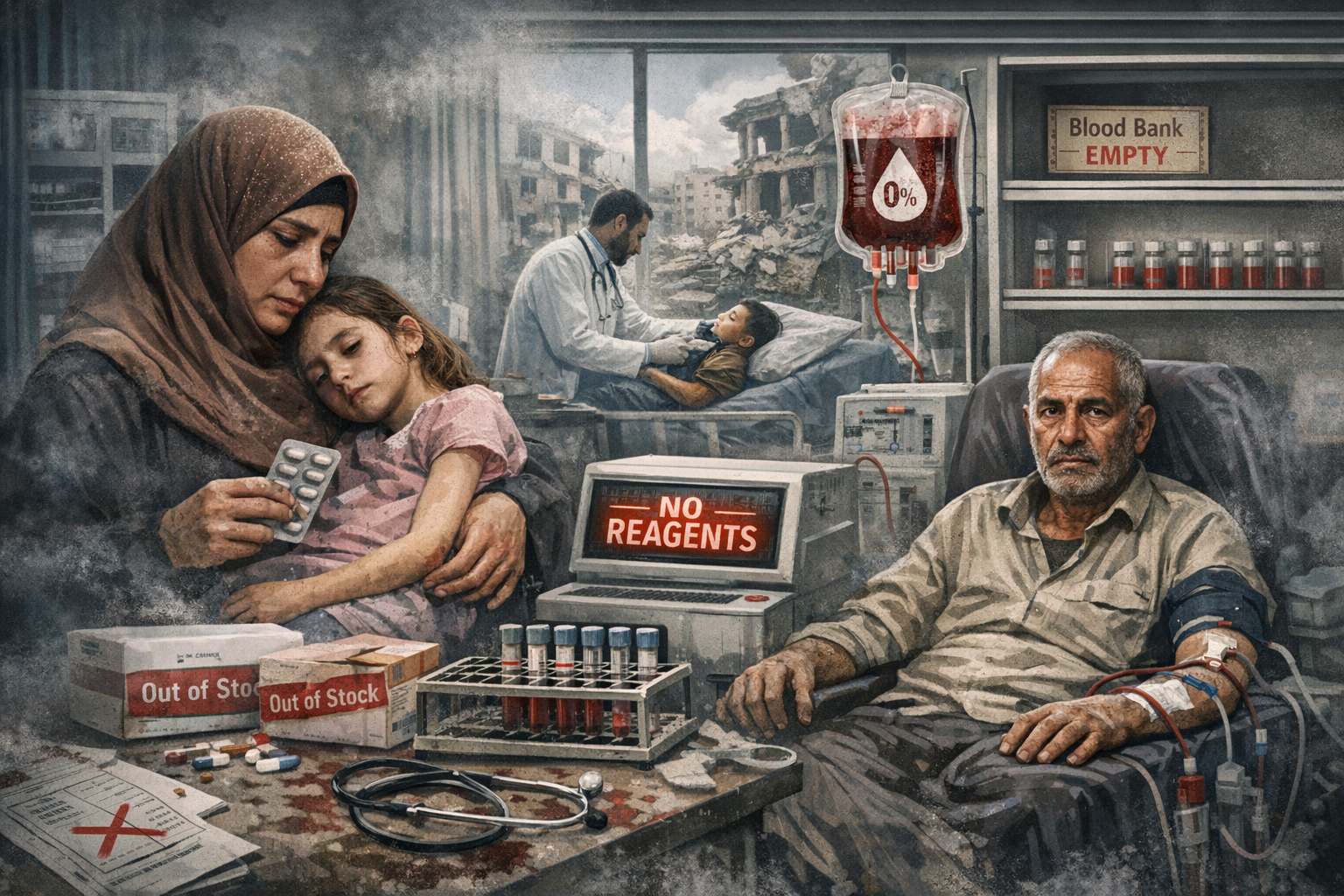 بصوت مكسور: “أُعطيت مضادات حيوية دون تحليل، مرة تتحسن ومرة تسوء. كل تأخير في التشخيص قد يضر بوضعها، وقد يسبب تدهورًا في حالتها وفي قسم الكُلى، يجلس أبو محمد (56 عامًا) على كرسي غسيل الكلى مرتين أسبوعيًا، لكن ما يقلقه ليس الجهاز بقدر ما يقلقه غياب التحاليل يقول أبو محمد “قبل الحرب كنت أُجري فحوصات أملاح الدم ونِسَب الأدوية بشكل منتظم اليوم لا أحد يعرف إن كانت الأملاح مرتفعة أم منخفضة لا تتوفر الإمكانيات لإجراء التحاليل بشكل دوري، عدا عن تقليص جلسات الغسيل بسبب نقص الأدوية والأجهزة. أحيانًا أشعر بدوخة حادة وتشنجات، لكن الطبيب لا يملك وسيلة للتأكد. نحن نُعالج بالظن، وهذا يضر بوضعنا”.