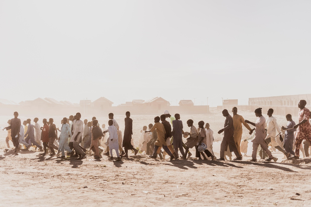 شباب من نيجيريا في قرية أعيد إعمارها بعد سنوات من العنف والهجمات المتطرفة.