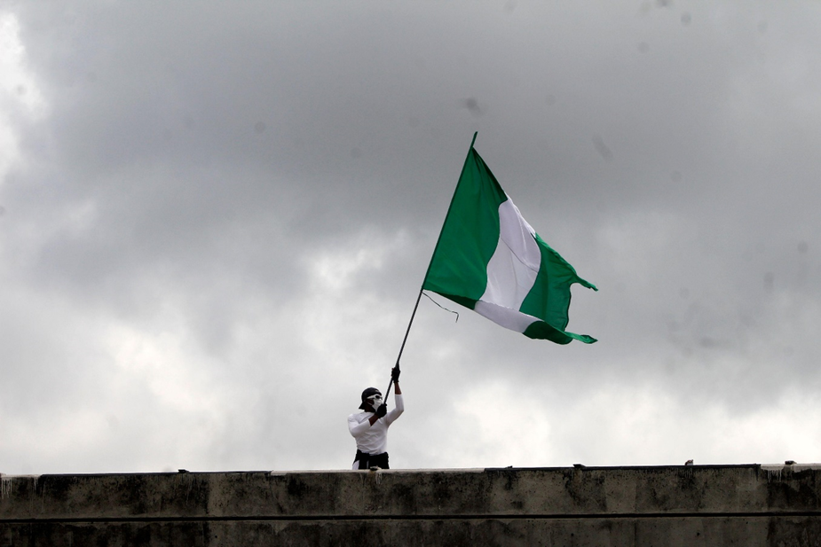 متظاهر يحمل العلم النيجيري خلال احتجاجات ضد الغلاء وسوء الإدارة في لاغوس، ضمن حركة “#أنهوا_سوء_الحكم” عام 2024.