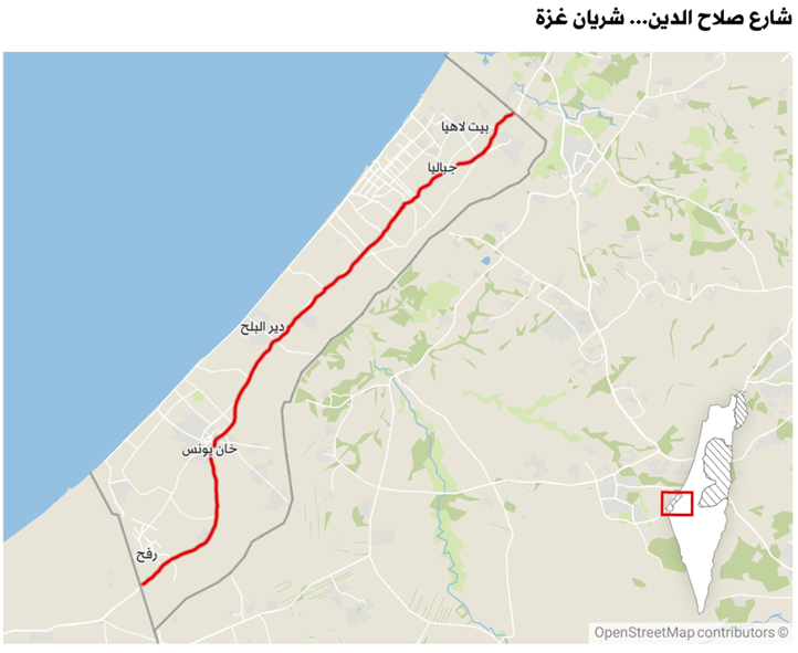 وشارع صلاح الدين طريق حيوي ورئيسي، ويمتد من شمال القطاع إلى جنوبه، وكانت مسألة السيطرة عليه ذات أهمية عسكرية كبرى خلال الحرب الإسرائيلية على القطاع، وركزت التحركات الإسرائيلية على قطعه بمحاور مختلفة.