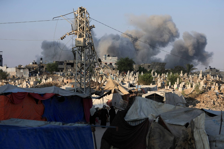 دخان فوق مدينة غزة جراء قصف إسرائيلي السبت (رويترز)