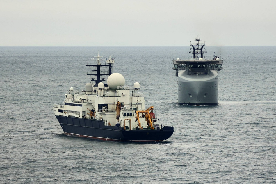 سفينة تابعة للبحرية الملكية البريطانية تنفذ دورية قرب السفينة الروسية يانتار في بحر المانش يناير 2025 (أ.ف.ب)