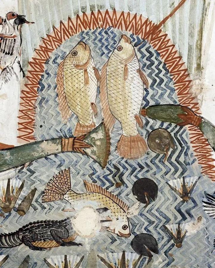 جدارية لعملية اصطياد أسماك من مقبرة “مننا” التي تعود إلى أحد النبلاء – الأسرة الثامنة عشرة