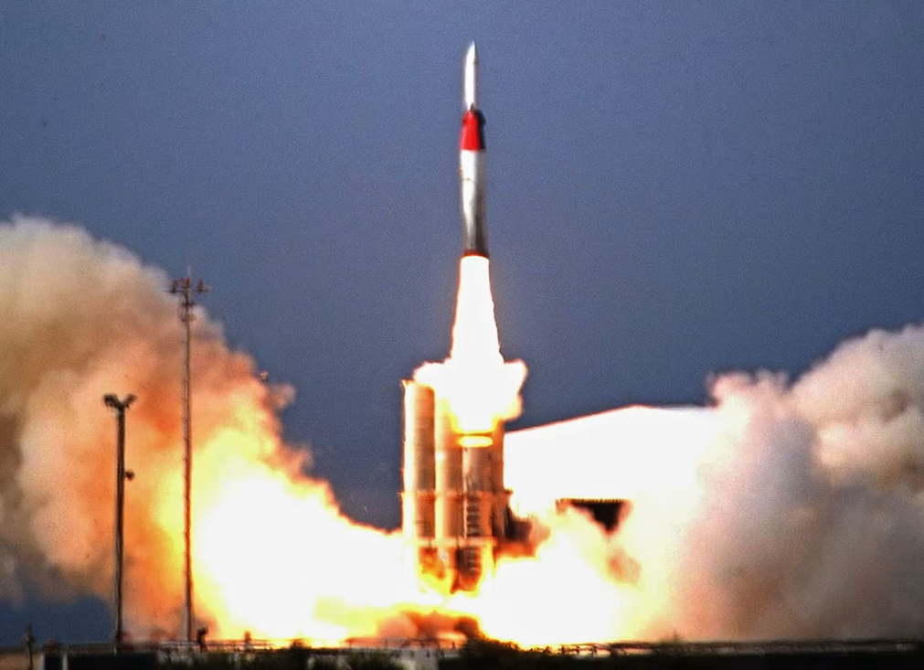 صورة نشرتها شركة الصناعات الجوية الإسرائيلية، للحظة إطلاق صاروخ آرو 2 المضاد للصواريخ بنجاح في 2 ديسمبر/كانون الأول 2005