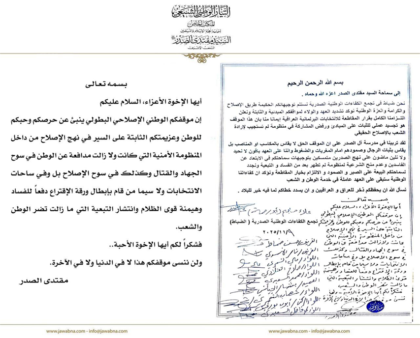 وجاء في رسالة أبو مصطفى الحميداوي، التي اطلعت عليها وكالة شفق نيوز، أن المقاطعة تمثل “موقفًا وطنيًا شريفًا يعبّر عن وعيٍ عميق ورفضٍ قاطع لكل ما يُراد به تزوير الحقيقة“.