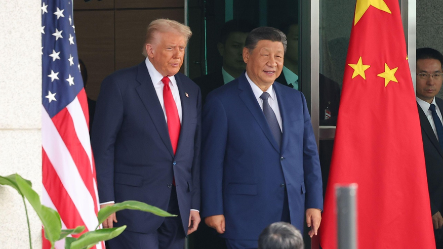 الرئيس الصيني يميناً والرئيس الأمريكي يساراً وعلى جانبيهما علمي بلادهما