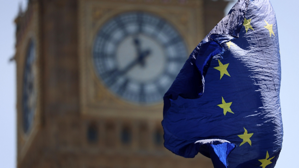 علم الاتحاد الأوروربي أمام ساعة بيغ بن.