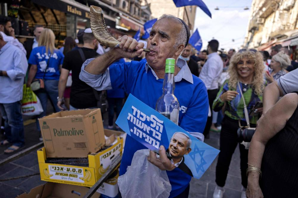 مسيرة انتخابية لأنصار «الليكود» في سوق بالقدس (أ.ف.ب)
