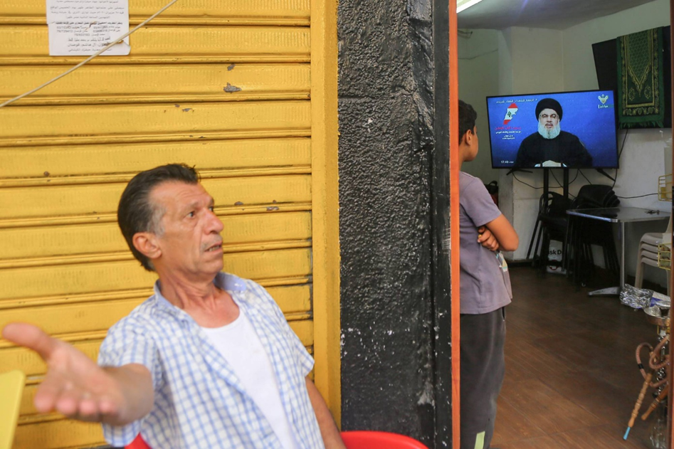 شريحة واسعة من اللبنانيين كانوا يترقبون الكلمات المتلفزة للأمين السابق لـ«حزب الله» حسن نصر الله (أ.ف.ب)