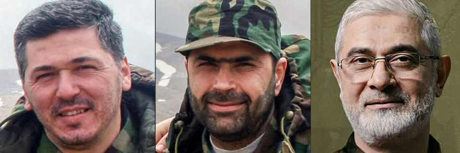 صورة مركبة لقادة عسكريين في «حزب الله» وهم من اليسار إبراهيم عقيل ووسام الطويل وطالب عبد الله