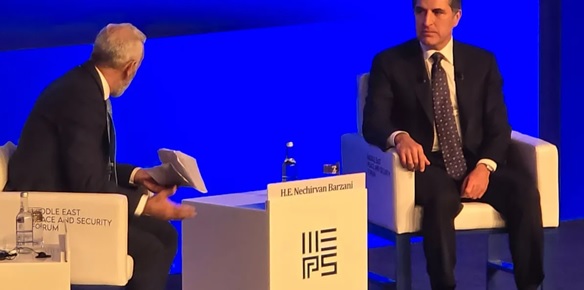 جاء ذلك، خلال كلمة لنيجيرفان بارزاني، بندوة حوارية على هامش فعاليات منتدى السلام والأمن في الشرق الأوسط (MEPS 2025) المنعقد في محافظة دهوك بإقليم كوردستان.