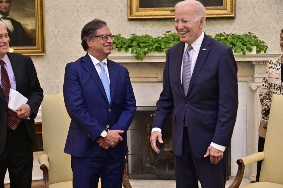 الرئيس الكولومبي غوستافو بيترو يلتقي الرئيس الأميركي جو بايدن في المكتب البيضاوي بالبيت الأبيض، واشنطن (20 أبريل 2023).