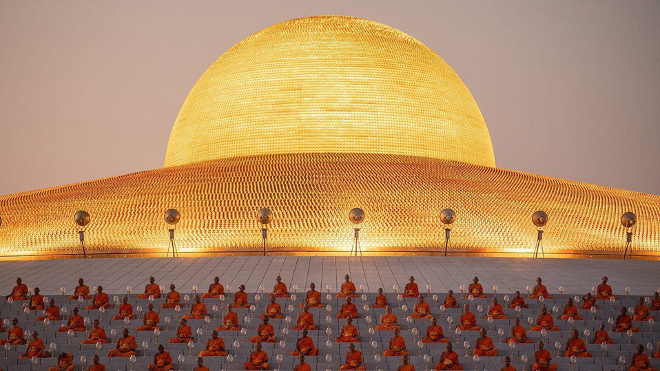 صورة رهبان أثناء الصلاة تحت القبة الذهبية الهائلة لمعبد “وات فرا داماكايا” خلال احتفال “ماكا بوتشا” السنوي في فبراير/شباط الماضي. إنه مشهد يخطف القلوب. عشرات الآلاف من الرهبان والمريدين، يحمل كثير منهم المصابيح، ويجتمعون لإحياء أول تعاليم بوذا الكبرى. ذلك البريق القادم من دنيا الخيال يستحضر ملامح مخطوطة بورمية من القرن التاسع عشر تصوّر أول خطبة لبوذا في حديقة الغزلان، حيث يحيط به الرهبان والحيوانات في مشهد مهيب. كلا الصورتين تجسدان إخلاص جماعات تسعى للتكريم والتغيير.