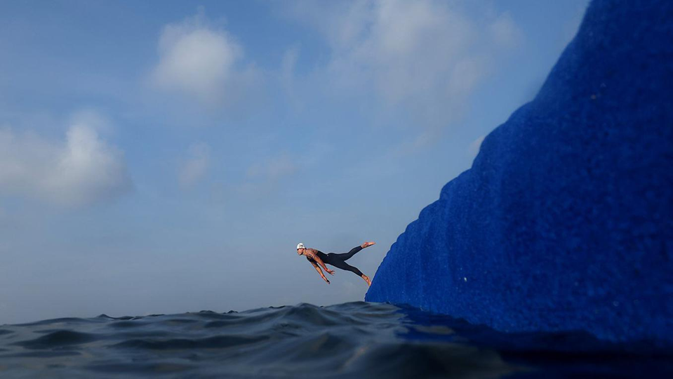 تُجسّد صورة التقطت للسبّاح الصيني تيانشن لان أثناء مشاركته في سباق التتابع بالمياه المفتوحة ضمن بطولة العالم للألعاب المائية في سنغافورة في 20 يوليو/تموز لحظة توقف مذهلة وهو في منتصف القفزة من منصة زرقاء داكنة. التقاء درجات الأزرق – السماء والماء والمنصة – وتعلق جسد الرياضي في الهواء يستحضران جوانب متباينة من خيال الفنان الفرنسي إيف كلاين، الذي ابتكر عام 1957 درجة اللون المكثفة “الأزرق كلاين الدولي”، وتركيبه التصويري عام 1960 “القفزة في الفراغ”، الذي يوهم المشاهد بسقوط جسده من سطح مبنى في باريس نحو الشارع. كما في صورة سنغافورة، تتماهى فيها الجسد والهاوية في وحدة واحدة.
