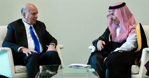 من جانب اخرالتقى وزير الخارجية ، فؤاد حسين، نظيره السعودي الأمير فيصل بن فرحان، يوم الثلاثاء، في مقر الأمم المتحدة بنيويورك، على هامش المؤتمر الدولي بشأن القضية الفلسطينية، فيما شكلت ثلاثة ملفات رئيسية محور النقاش بين الجانبين.
