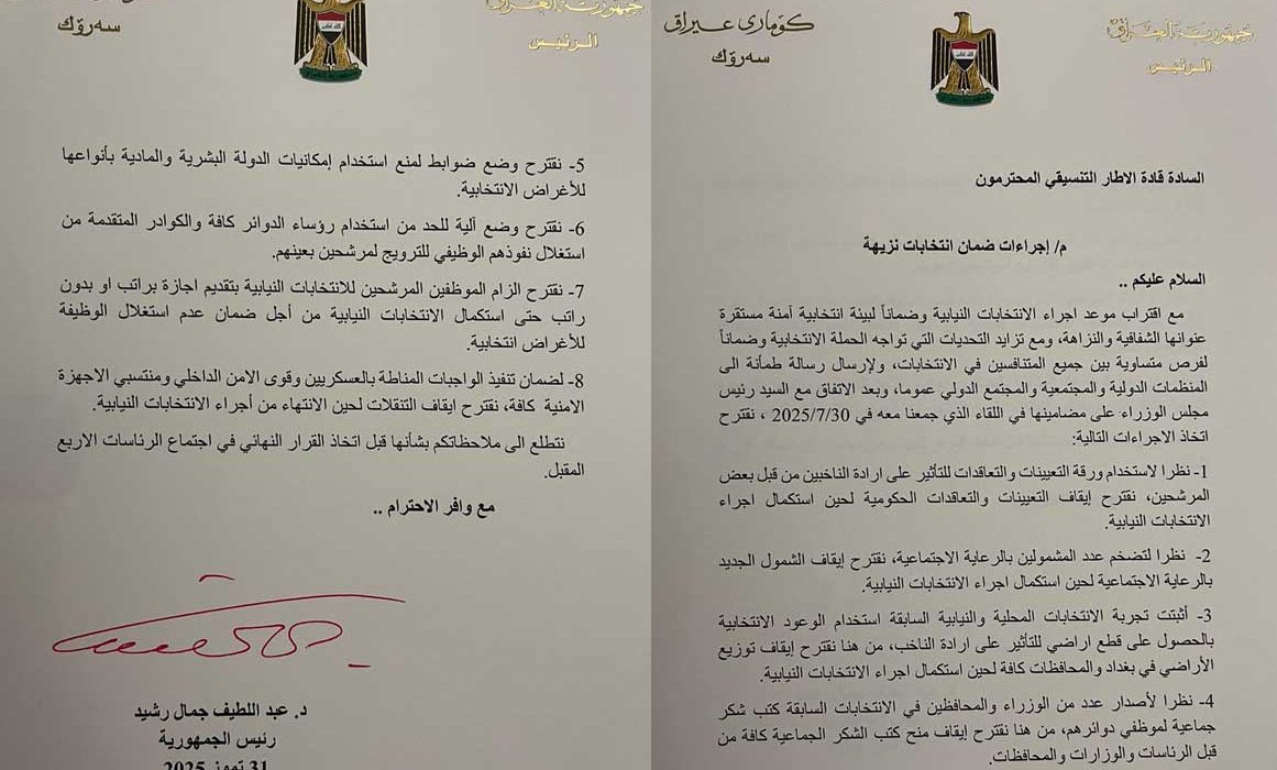 منذ 3 أشهر رئيس الجمهورية يوجه رسالة مهمة إلى قادة الإطار التنسيقي اخبار كشف مصدر سياسي ، عن توجيه رئيس الجمهورية عبد اللطيف جمال رشيد رسالة مهمة إلى قادة الإطار التنسيقي. وقال