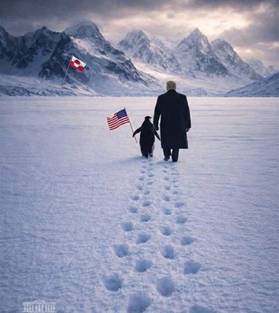 ترامب يتمشى في غرينلاند حاملا العلم الامريكي !!!