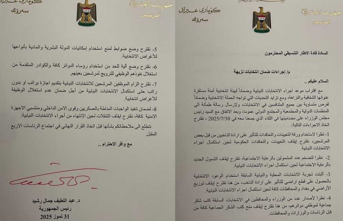 رئيس الجمهورية يوجه رسالة مهمة إلى قادة الإطار التنسيقي